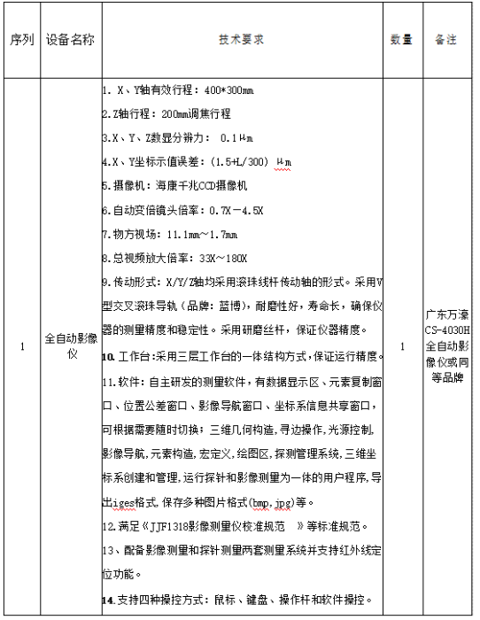 6. 项目概况:采购1台全自动影像仪、1台全自动压力检定系统、1套量块、1套7.螺纹塞规和2套扭矩扳手,用于计量标准器检定检测