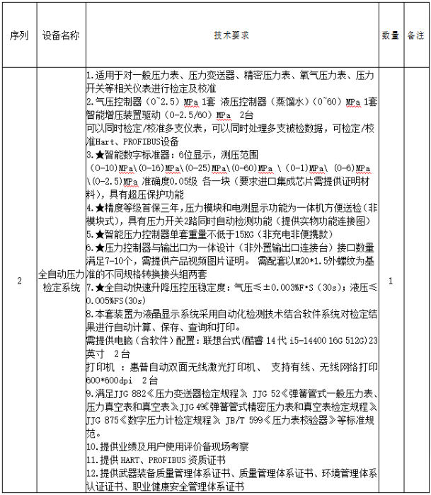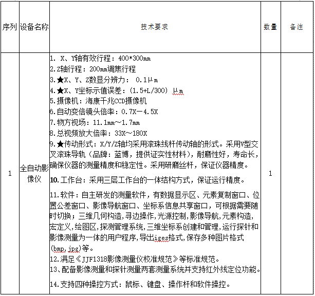 6. 项目概况:采购1台全自动影像仪、1套全自动压力检定系统、1套量块、1套螺纹塞规和2套扭矩扳手,用于计量标准器检定检测,技术参数内标★为必须满足的条件。具体详询项目负责人。