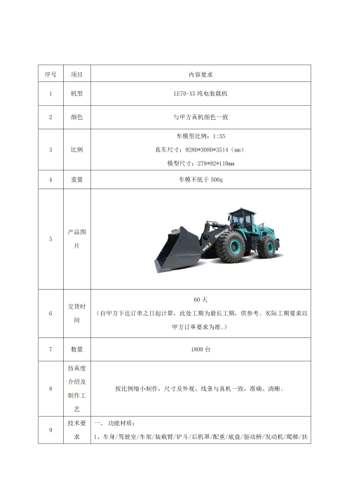 1、 项目名称:LE70-X5纯电装载机模型采购项目