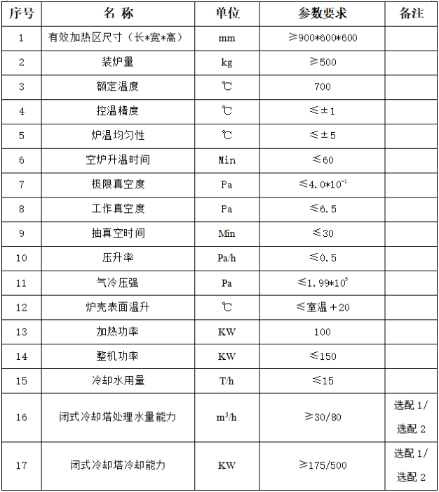 1. 项目名称: 装备车间真空回火炉采购项目