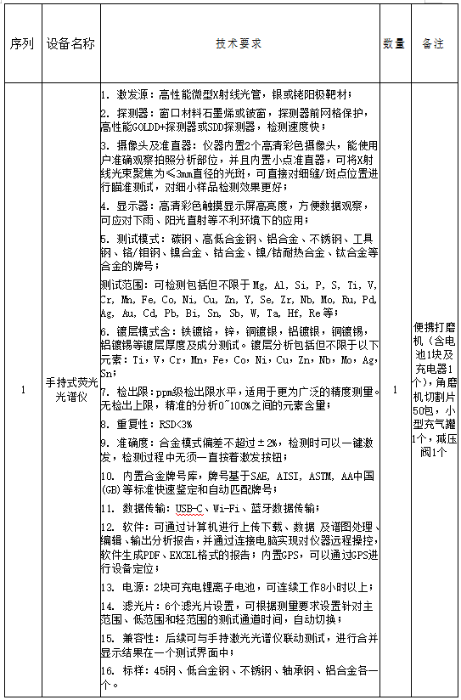 1. 项目名称: 山推股份质量部手持光谱仪设备采购项目