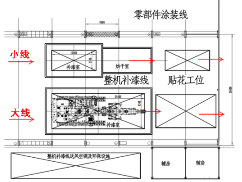 新建整机精饰线,包括喷/补漆室、烘干室、喷漆废气处理系统、电气控制系统、消防系统等。
