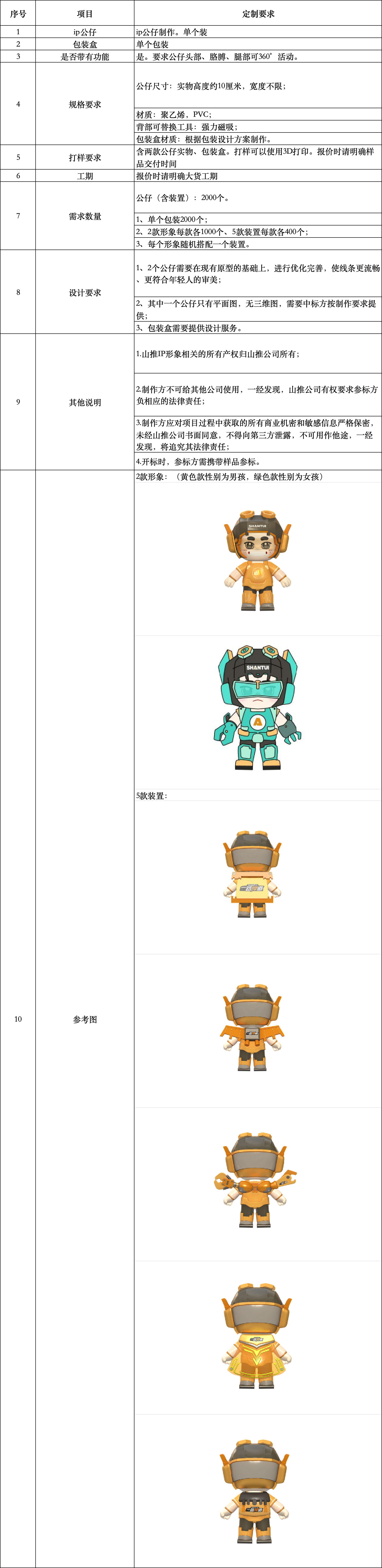 山推工程机械股份有限公司(以下简称“山推股份”)为深化品牌形象,提升文创产品品质,满足业务拓展需求,计划在促销活动、员工福利、客户礼赠等领域广泛运用山推IP公仔。为确保产品质量与服务,公司决定通过公开招标程序,择优选择一家企业作为未来两年(2025年至2027年)的战略合作伙伴。