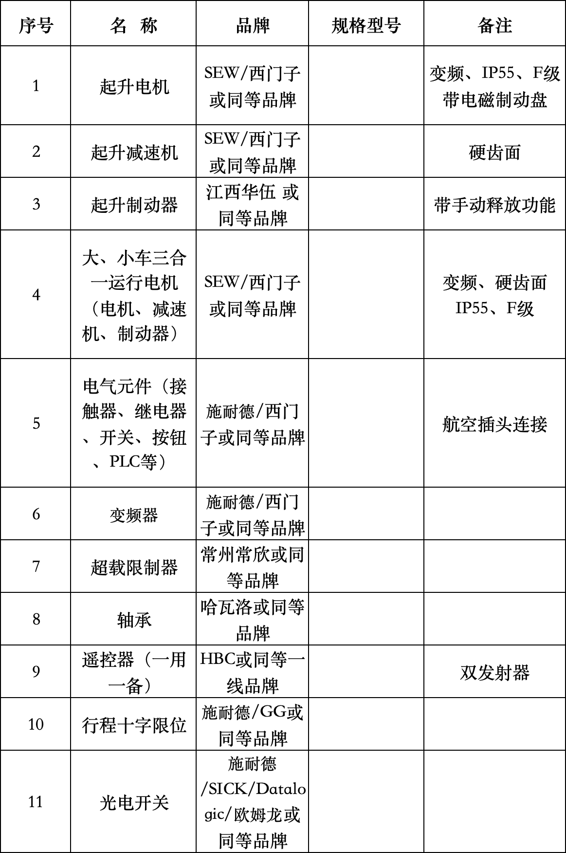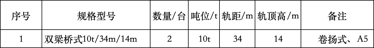 6. 项目概况:电动双梁桥式(欧式/新中式)起重机的设计、制造、运输、安装、调试、检验取证等(交钥匙工程),规格及数量如下表。