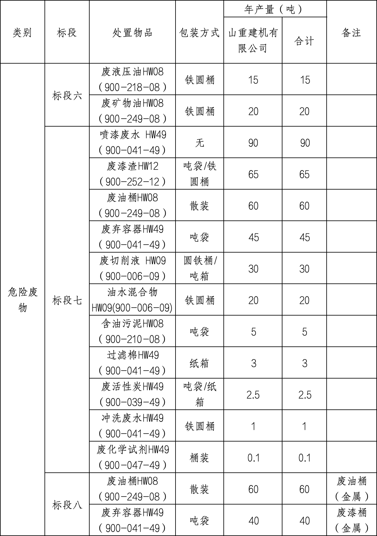 5. 项目概况:对山推股份公司及子公司生产废水、危险废物委托处置进行公开招标,根据类别、产生地、处置要求等分为八个标段,可分别报名,分别确定处置商。每个标段需全部满足相应资质要求 。标段三、五、六、八每批次危废经投标方检验后具备利用价值的以向发标方付费方式处置。
