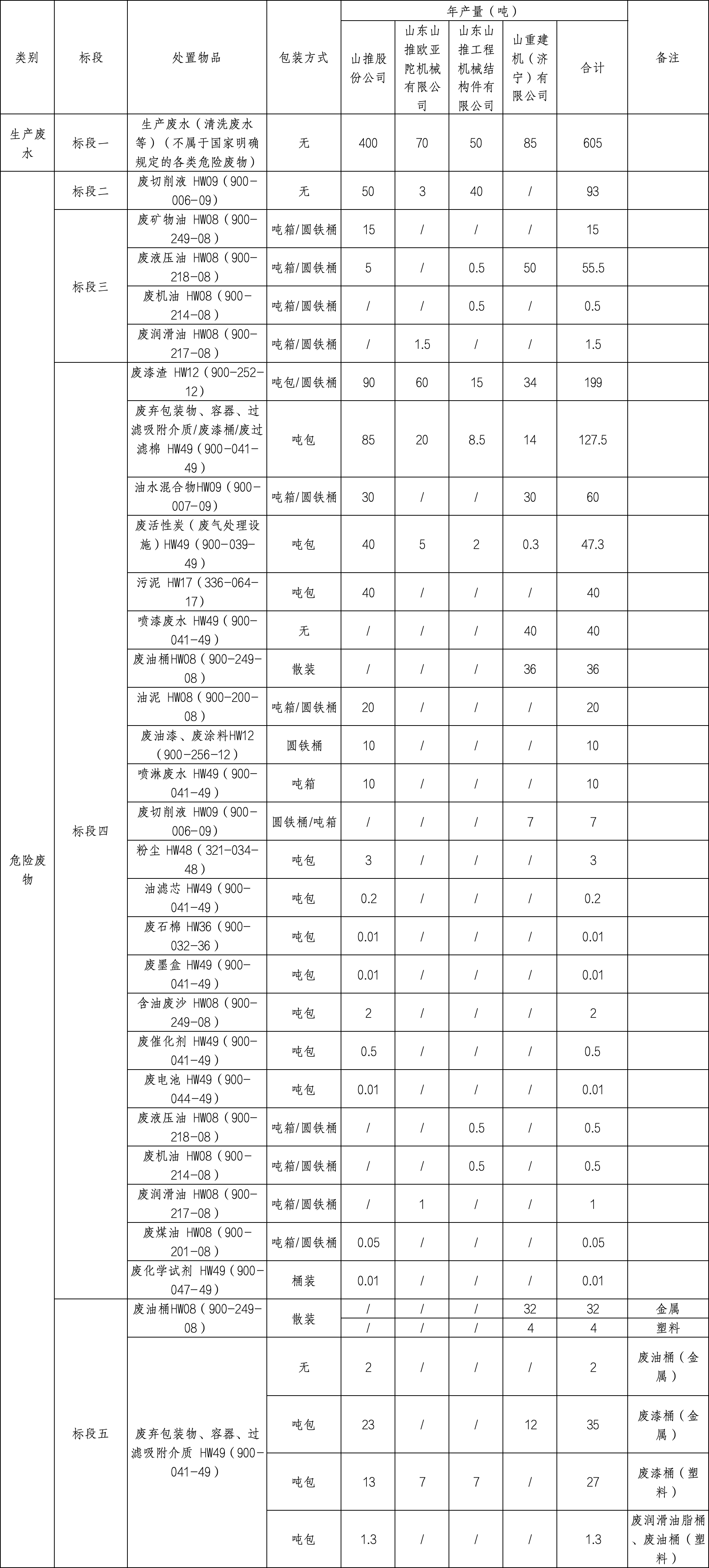 ① 山推股份生产废水、危险废物委托处置项目报名表