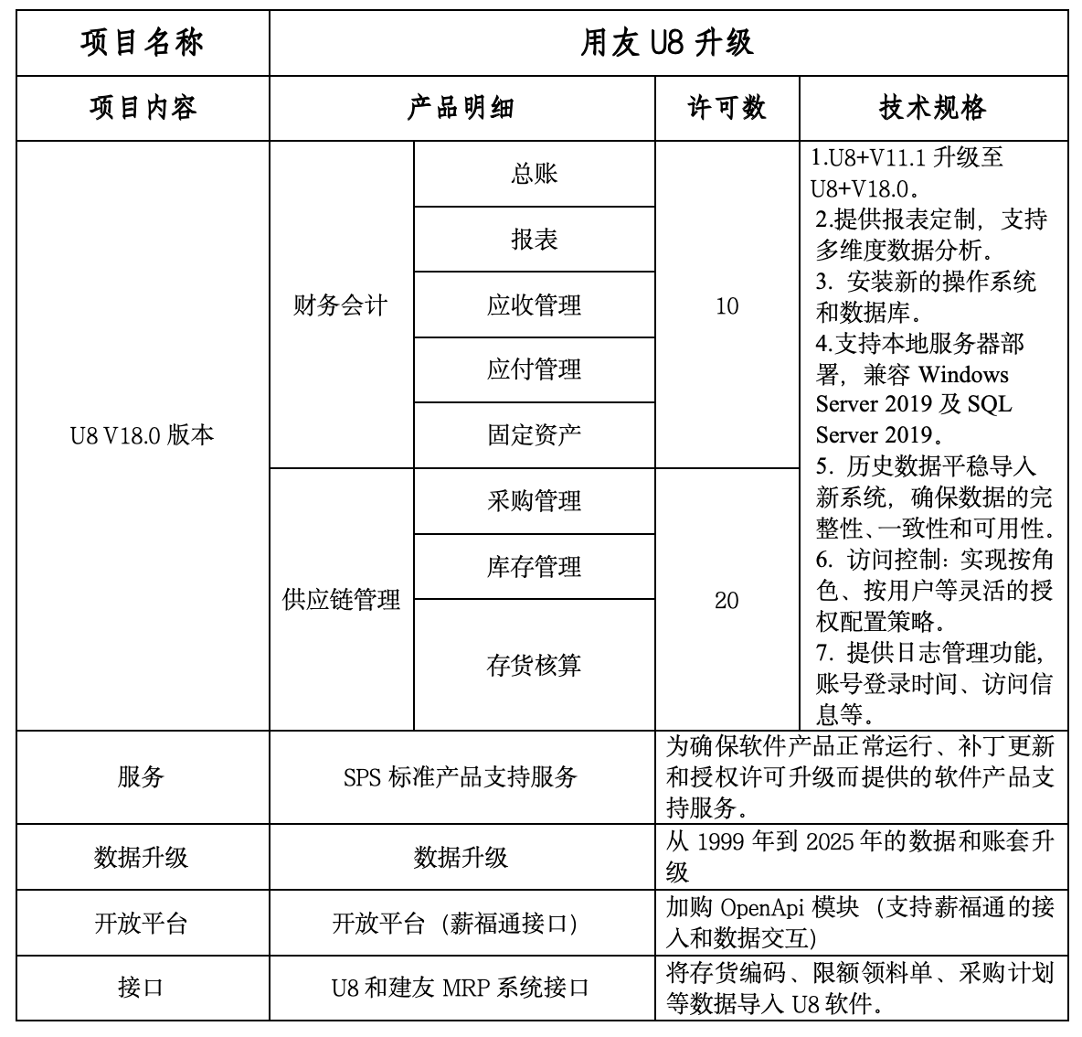 1、 项目名称:用友U8升级