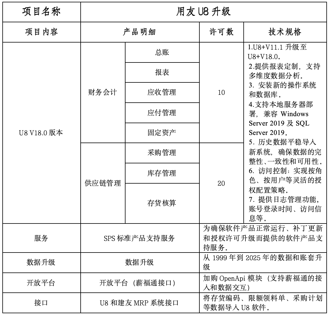 1、 项目名称:用友U8升级