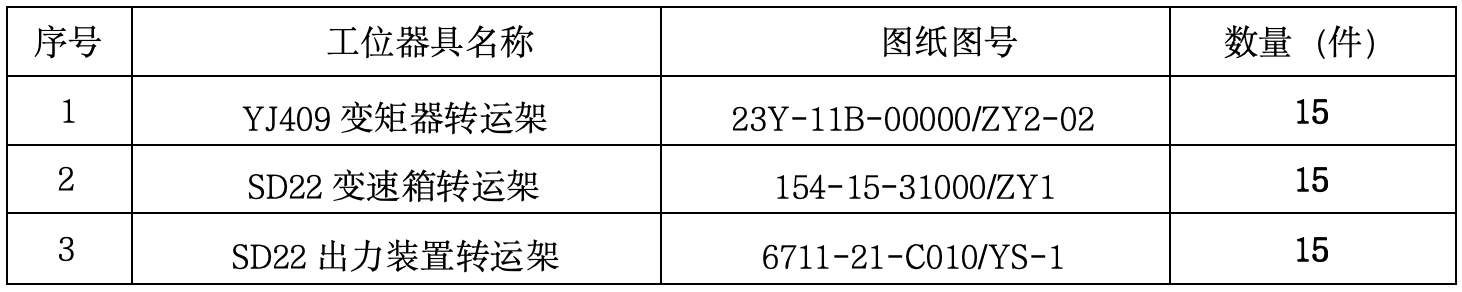1. 项目名称: 传动分公司SD22变矩器、变速箱和出力装置转运架项目
