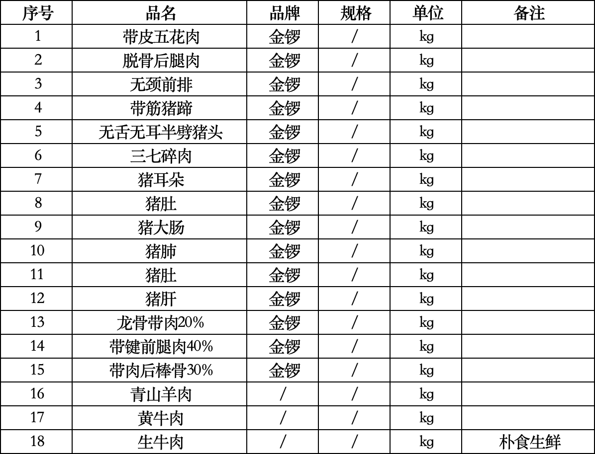 第三标段:冷鲜肉类