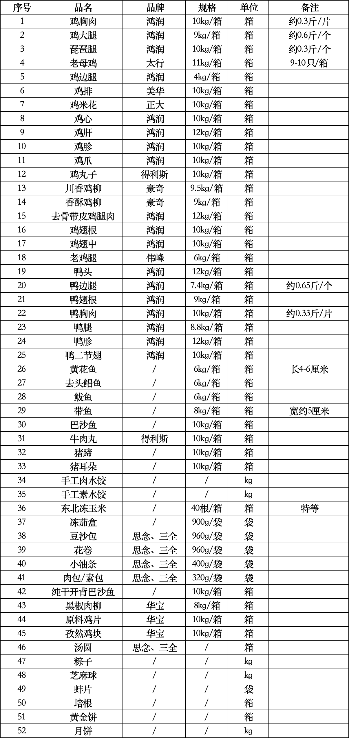 第二标段:冷冻品类