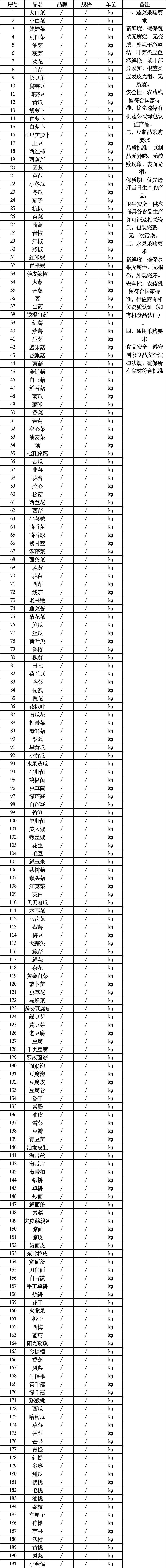 第一标段:蔬菜豆制品水果类
