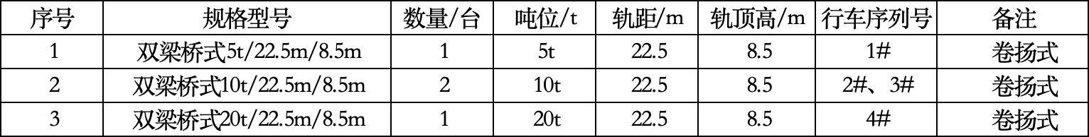 6. 项目概况:电动双梁桥式(欧式/新中式)起重机的设计、制造、运输、安装、调试、检验取证等(交钥匙工程),满足新实验中心车间工件转运、吊装需要,规格及数量如下表