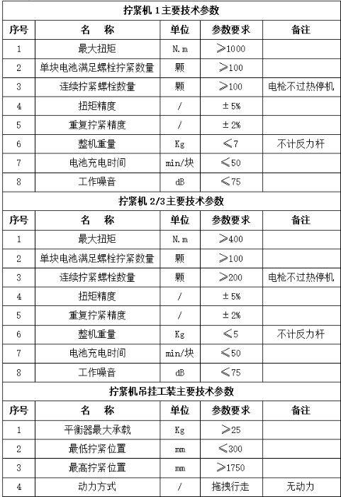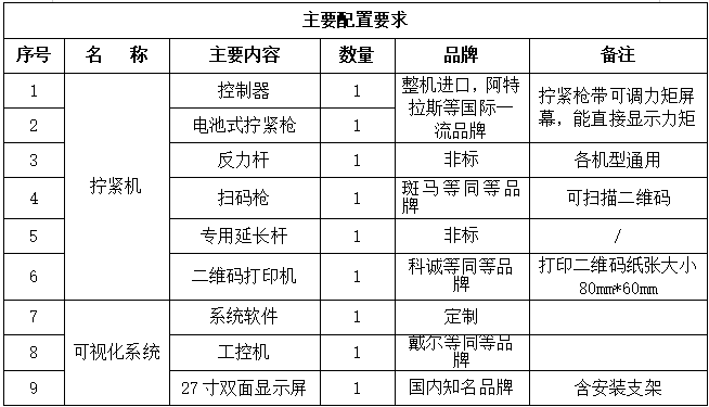 1. 项目名称: 二号主机厂电动拧紧机采购项目