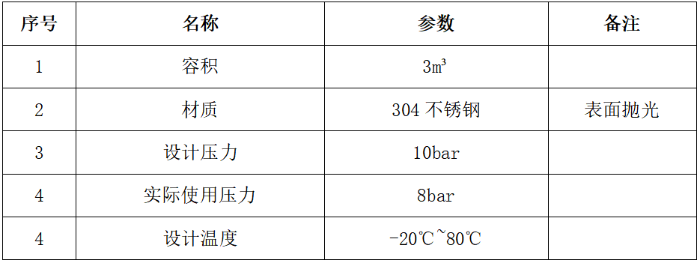 储气罐更新,具体参数如下表