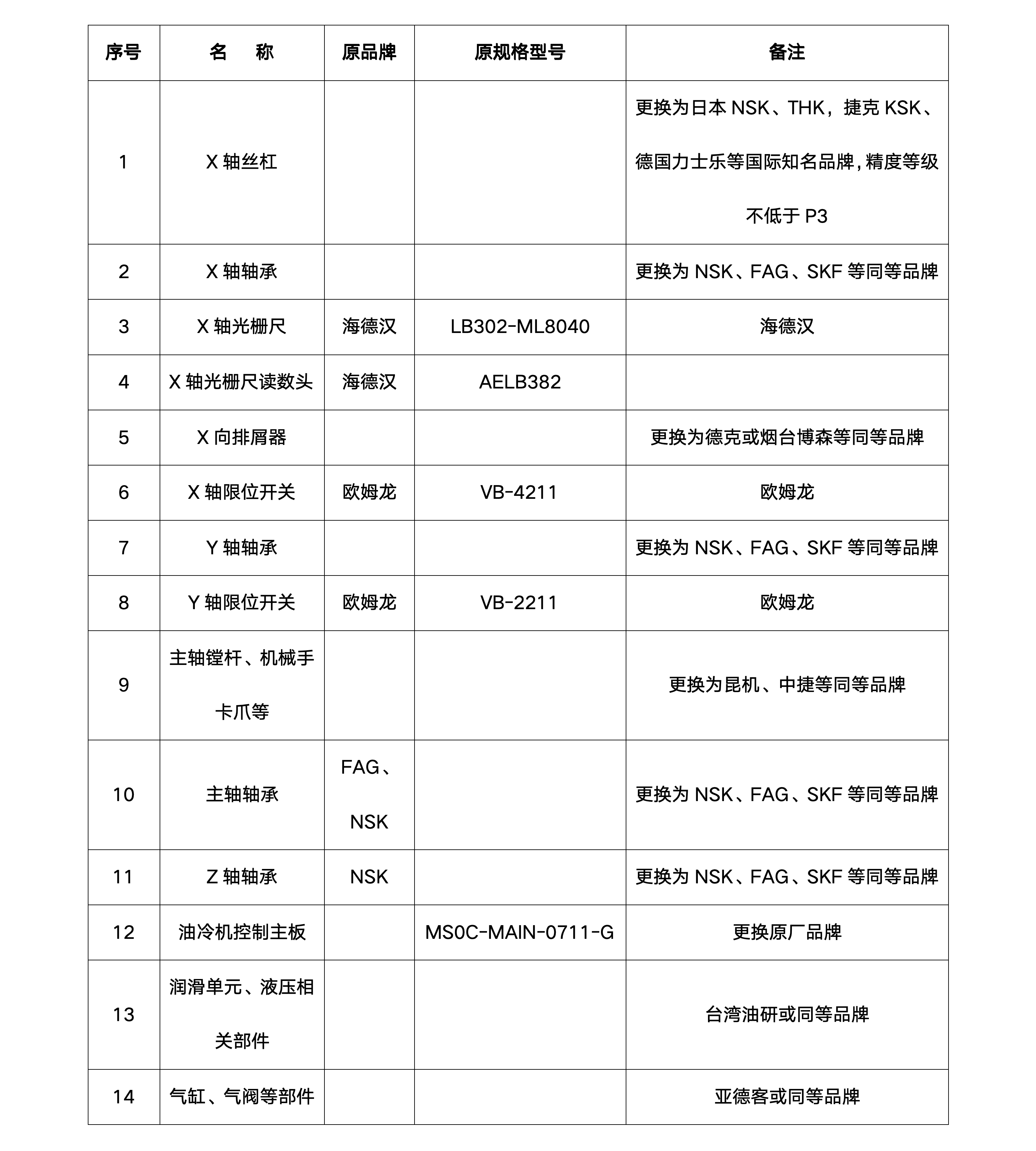 6. 项目概况:该设备目前两个主轴加工椭圆,X轴全闭环无法使用,半闭环状态工作台位移0.2-0.3mm,不能满足精度要求;加工调试过程中Z2轴手动旋转困难,ATC、APC功能故障率高,主轴冷却装置报警异常;开机报警频繁,需重新开机;铁屑传送带漏水。基于以上现状,为进一步满足产品高效交付,需对该设备进行大修,恢复机床出厂精度,保证机床功能稳定,提高设备利用率。