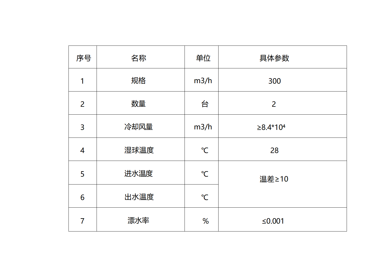 6. 项目概况:山推国际事业园履带底盘分公司2#水泵房,拟对其进行更新。新购300m³/h冷却塔1台替换原冷却塔。本项目为交钥匙工程,投标方需完成旧设备的拆除,及新设备的设计、制作、包装、运输、安装调试、人员培训、设备验收、交付使用等一切事项,满足需方的使用要求。主要技术参数