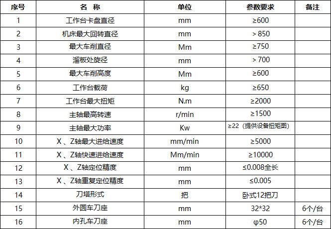 6. 项目概况:山推股份传动分公司机加工车间,采购数控立式车床2台。机床要求为台湾知名品牌、日韩等进口品牌,关键零部件均采用国际知名品牌。主要技术参数如下