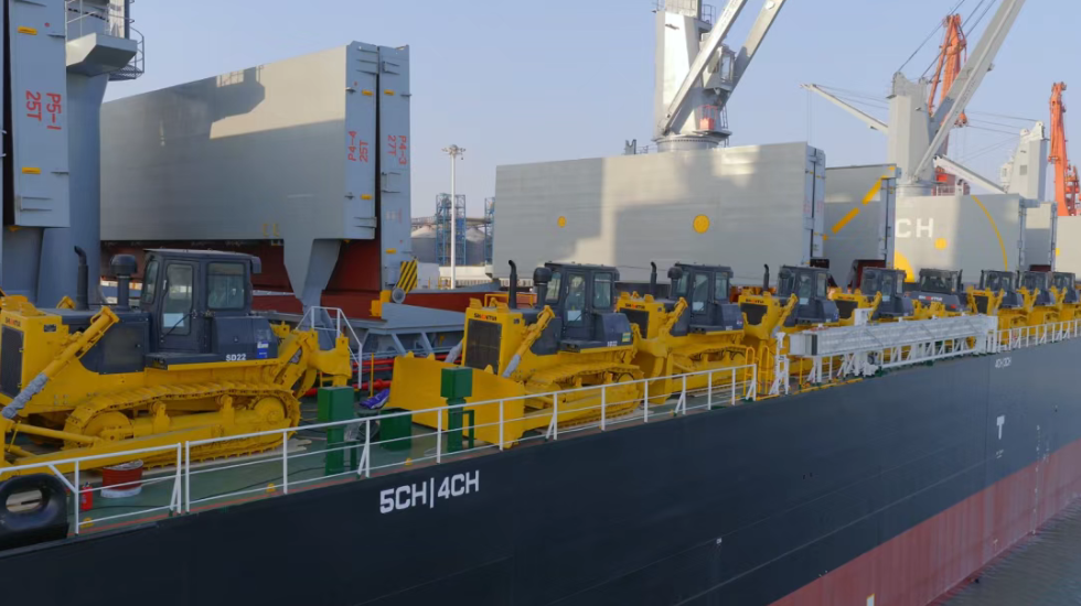 山推成功中标非洲国家性综合设备供应项目,推土机、挖掘机、装载机、平地机、压路机及挖掘装载机等百余台多品类设备装船发运。