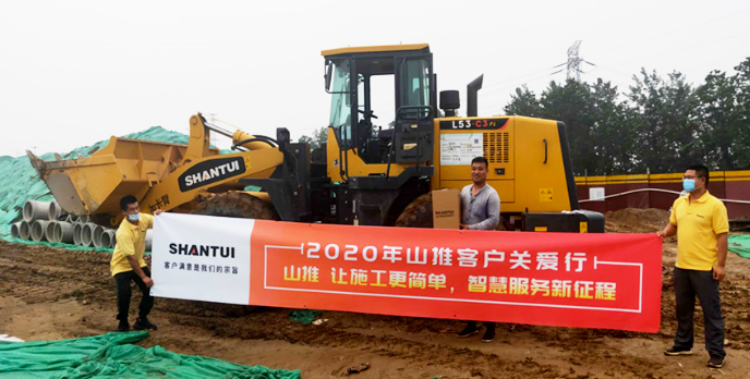 启动仪式后,走访人员携带关爱礼品,高呼 “疫情,我们共同抵抗;服务,我们一如既往;山推,让施工更简单”的口号,开启了2020年客户关爱之旅。