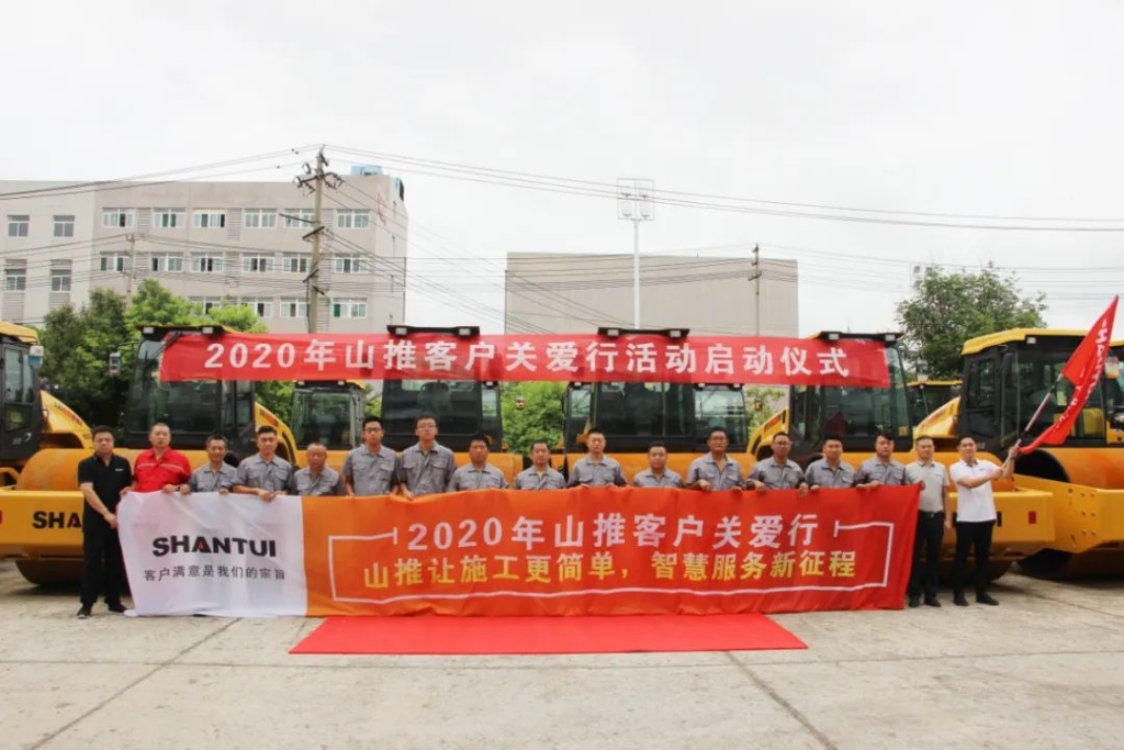 山推厂家代表现场授旗给安徽山推服务部部长,安徽山推服务人员秉持“客户满意是我们的宗旨”这一理念,利用“客户关爱行”活动为客户检修设备,同时收集客户使用信息和产品意见,反馈到厂家,促进产品改善,为后续产品升级提供依据。