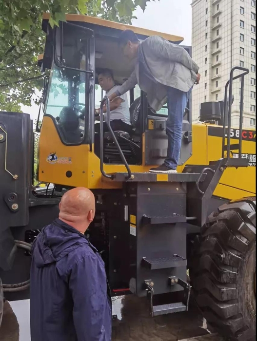 在活动现场,陈列的样机让客户们眼前一亮,赏心悦目的外观造型,驾驶室的视野范围,搭配着山推经典色的流线性设计,单从外观这一点来说已经博得了很多客户的眼球。“很漂亮,很好看,真机比图片更震撼,能跟我介绍一下性能和油耗吗?”用户于老板一到现场就迫不及待的了解起车辆情况。“中国重装省油王”作为新一代的拳头产品,L58K-C3装载机生于山推,却是整个山东重工集团技术沉淀与资源优势之集大成者,在掘起力、可靠性、操作性、节能性等方面均得到了全面提升。山推专属的低转速大扭矩潍柴发动机,为L58K-C3装载机提供了稳定充沛的高效动力,在传动方面,其自主研发的行星双变与源自德国的林德液压系统,兼顾操作舒适、安全稳定等多种需求,综合性能方面领先国内诸多竞品,这黄金内核,属实是独一无二。