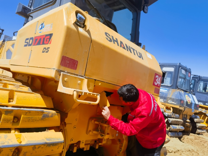在走访时,施工单位对关爱行人员的到来表示赞扬,其中一位项目负责人这样说道:“我干工程机械也干了快30年了,可以说我是真真正正的见证了山推的成长与发展,我接触到的山推设备不计其数,从最早购买的山推SD13开始,就带着设备闯南走北,走遍了大半个中国,山推的设备性能那真是一个字“赞”,其他厂家的设备我也接触过,但是用来用去还是感觉用山推设备用的最舒服。山推的散热性、密封性,与沙漠地区的作业环境高度匹配,尤其是专用的船型带筋履带板,能够轻松在沙丘上快速回转,简直如履平地。现在我的儿子接替了我的事业,希望他能跟随着山推的步伐一起成长。我其实更想说的是山推的关爱服务真的是很贴心,总是想到了客户的前面,让我们在享受高质量产品性能的同时,更是享受到了当“上帝”的感觉。”
