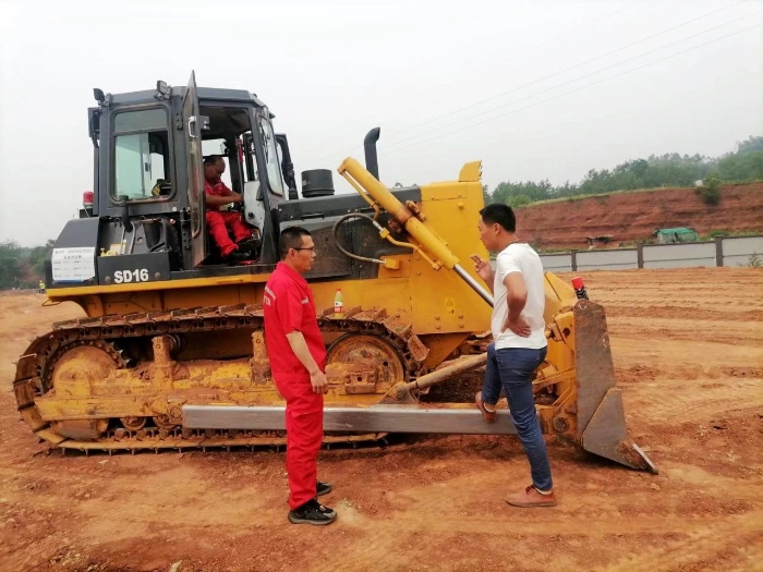 关爱脚步移至一台SD16推土机的施工现场,这是一台购置于2022年的设备,主要用于园区建设平场工程。履带上被磨亮的光迹以及发黄的锈斑,却让客户引以自豪,因为,这是这台山推朋友立下的“赫赫战绩”,更是山推产品实力的又一表现。