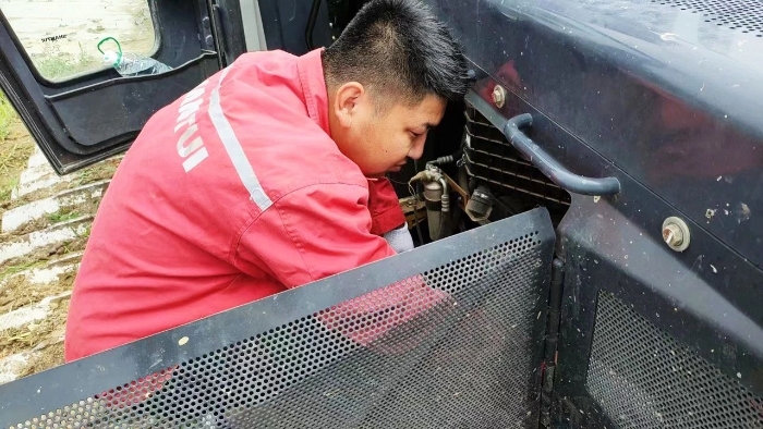 在闲聊过程中,我们的关爱小组人员不仅检查了客户设备所有的散热器和空调部位,还蹲下身来,仔细排查每个连接部位,以防止因放置松懈而产生的渗油问题。他们不惜被烈阳照射发烫的后背,也绝不会忽略任何重点部位的筛查。