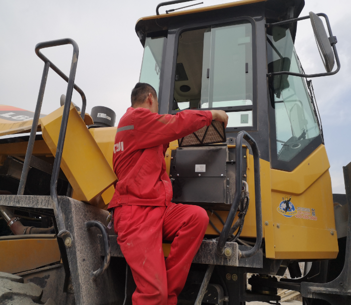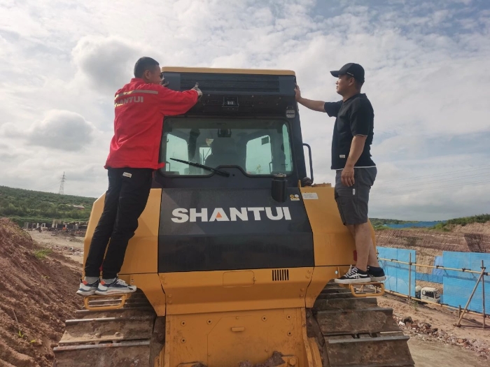 在项目现场,服务人员一边有条不紊地清理着该车的空调滤芯、对空调系统进行细致、全面的检查,一边同司机交流着日常清理维护的注意事项。该公司车辆管理员一边跟服务人员学习日常维保小技巧,一边跟我们反馈产品的使用情况。他表示正在他们厂里干活的山推装载机,动力强劲,油耗低,操作简单,大大提高了建材的装卸速度。而且该车的日常维保,都是山推的服务人员主动联系司机,定时去进行指导和保养,及时且效率高,完全不影响他们的施工进度。“当时买山推真的买对了!”对我们的售后服务那是相当满意。