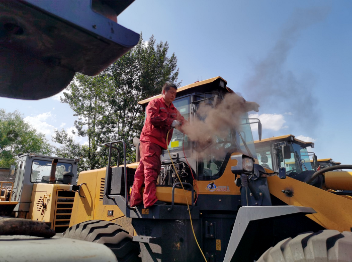 听,只是其中的一个方面,让我行动给你看!电厂、砂石、煤矿等各类工作场地,是服务人员大展身手的好地方。这被厚厚的煤渣所紧紧包裹住的设备,还有那经拆卸后裸露在视线中的各个部位的管道,必须经过长时间的细致检查才能准确地进行判断,检查确认没有问题后,再对设备进行整车的清洗。站在车身之上,手持风枪,尘土飞扬,却清晰的照见了他们最帅气的模样,污浊的灰尘沾满了工装,烈阳下汗水肆意的流淌又何妨?他们争分夺秒的奋斗目标已达成,留下的清凉已送与客户,客户满意的微笑和认可就是最好的证明。