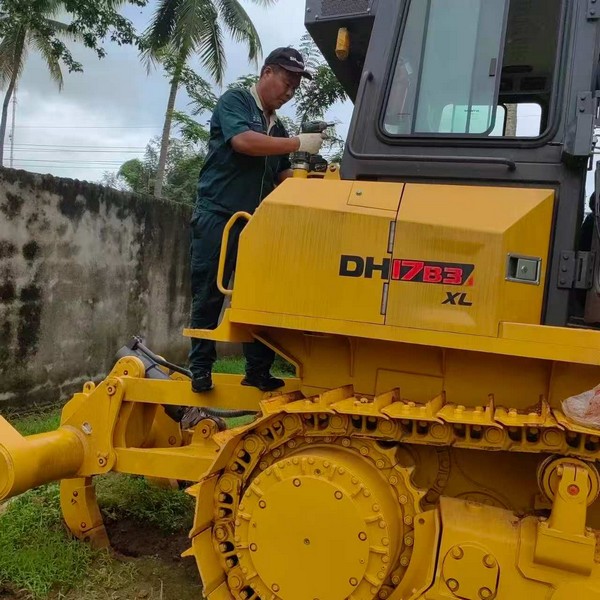 关爱小组人员来到了山推忠实终端客户的施工地现场,该客户拥有山推各类设备40余台,设备用于土地开发。此行重点是对设备车辆进行检修维护。服务工程师脚踩松土器,手持风枪,用心的对每一颗螺栓进行检测巩固,对易漏油点进行逐一排查,有效的防止漏油问题产生。同时进入驾驶室仓内进行铲斗举升、降落等动作的检验。快速、有效的检查,让机手们频频投来认可的眼神。