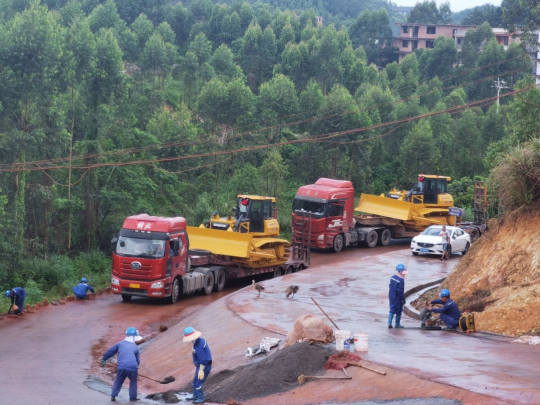2022年8月15日凌晨1点,广西山推南宁总部装配车间内灯火辉煌,服务人员井然有序,他们正在争分夺秒的安装、调试4台DH17-C2 LGP的铲刀。经过连夜奋战,凌晨4点,拖车分别载着4台DH17-C2 LGP推土机,在皎洁的月光下,整装待发。早上8点,当清晨的第一缕阳光映照在散发着黄色泥土气息的大地上时,4台推土机已准时到达客户工地现场。