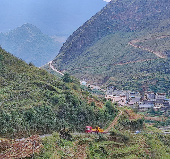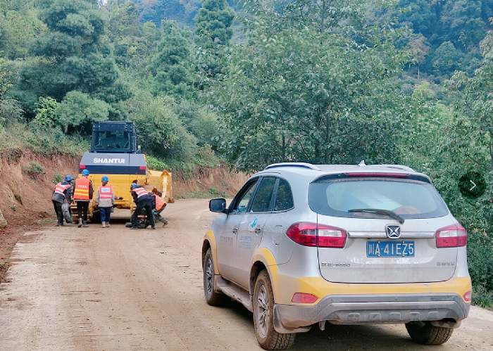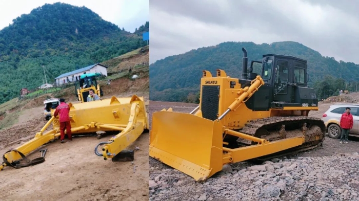 历经5个小时惊心动魄的山路,设备终于在绵延的大山深处找到一处可以安装铲刀的位置。经过工程师们的专业安装,设备摇身一变,霸气的展现在这如诗如画的山林中。然而,这并不是最终目的地!