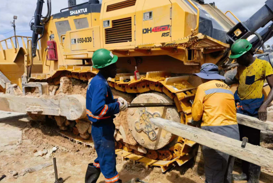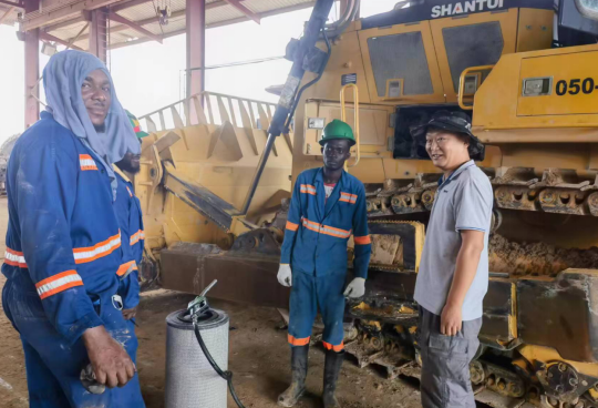 2024年由于工作业绩突出,王海龙被抽调到圭亚那,负责圭亚那DH46-C3项目,此项目一次性采购了山推9台DH46-C3推土机,用于圭亚那博赛矿区的开采工作。习惯了国内的四季分明,初到圭亚那,却被当地的气候温度所“折服”。由于圭亚那属于热带雨林气候,常年的平均温度均达到38度左右,紫外线强度极高。户外的工作又常常高达10几个小时,一个月下来,王海龙被晒的皮肤黝黑,到更像是个地地道道的非洲小伙儿了,他总是开玩笑的说:“这多好,更容易和项目这里的机手们成为朋友了,没有肤色差异了。”