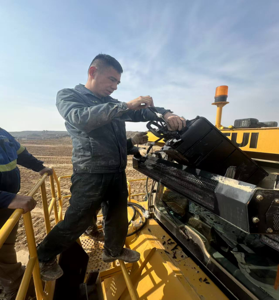 “我们不能只会修推土机,还要学会驾驭不同产品的维保技能。”这是韦建峰常对团队兄弟们的忠告。在乌兹的20台挖机主要承担了大坝的土方转运工作,挖掘装车。车辆反复往返,长时间的工作,对设备的行走系统和密封条件有所考验。为此,韦建峰将团队人员进行强化培训,使得服务人员在维修挖掘机问题时能够游刃有余。2024年10-11月期间,他带领团队共处理20台挖掘机设备整改项4项次,通过现场高负荷运转,及时发现问题,及时提出反馈给工厂,进行整改,提高了设备整体质量。用高效的服务技能赢得了客户的信赖。在挖机的市场中硬是走出了一组“排头兵”的架势。