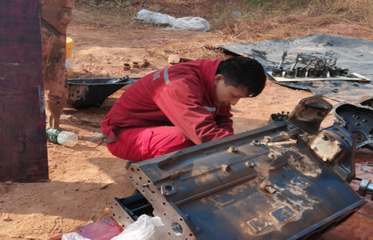 服务人员将随车放置的木板置于地面,这是放置拆卸零件的标准化操作,有效的避免着零件的缺失。分批、分点的进行逐一排查,是对故障点最好的甄辩,细致入微的数遍摸索,冷静快速的故障诊断,是对修复过程的最好体现。六个小时的户外维修,服务人员将修复好的设备重新交付到客户的手中,下午两点,设备再次启动,隆隆的轰鸣声好似对元旦的致敬!