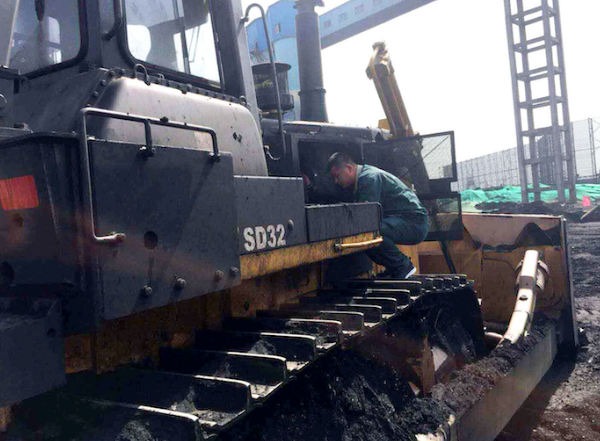 “毕竟作业环境在这,粉尘特别大,空滤、机滤基本上每两天就得清理一次。”山推技术服务人员万亮说。