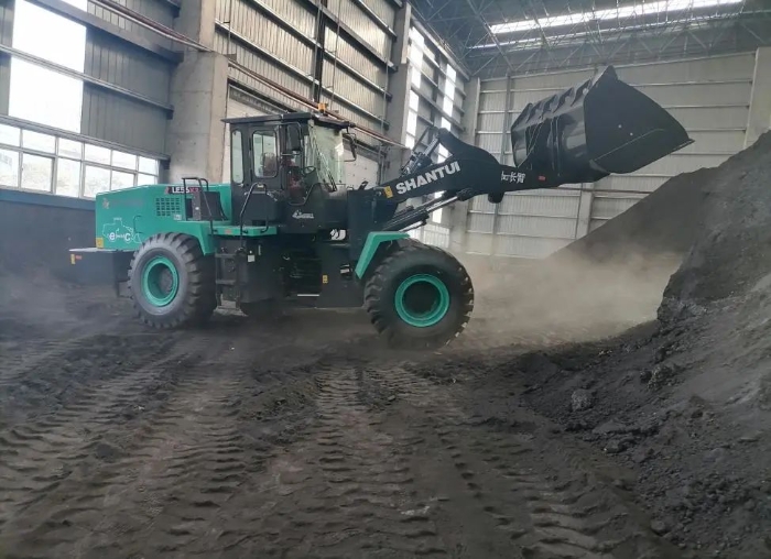 初春时节,走进新疆阿克苏某电厂,两台LE56-X2纯电装载机正在有条不紊的进行工作;铲煤、运输、卸煤,动作平稳、流畅。电厂负责人李经理开心地说:“我们的电厂,工作量大,任务重,使用传统装载机对环境、能源都有很大的破坏和浪费。自从公司决定购置新能源设备后,我们也接触了一些大品牌商家,对纯电动的装载机做了一些功课,再三斟酌和对比后,最终选择了山推纯电装载机。”
