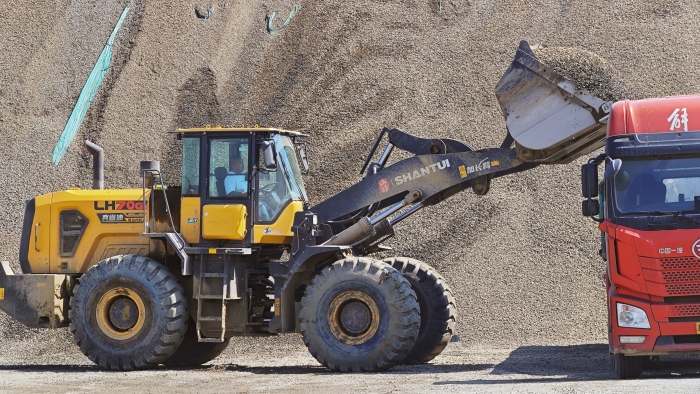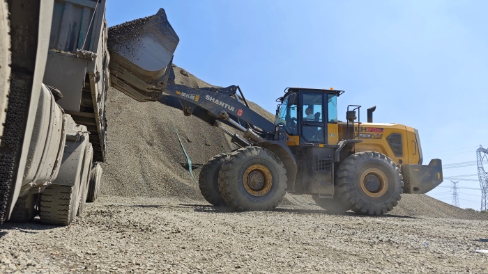 “开始那会儿设备跟不上,只能用三吨的(装载机),效率低,不出活儿。现在不一样了,拿这台山推70来说,五六铲就能装一车。”孟总指着堆成小山一样的砂厂料跟前一台正忙碌着装卸作业的山推LH70-G静液压装载机说道。