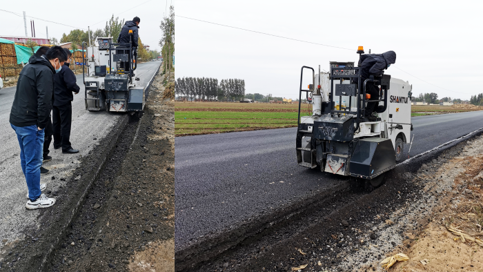 说干就干,随即设备被转运至了一处高速路施工工地,该工程为高速路翻修工程,路基十分坚硬,铣刨相对困难。 开始施工后,铣刨机依然轻松应对,且施工质量接近完美!赵总一行人被施工效果及施工效率深深震撼,不约而同地对山推设备竖起了大拇指!