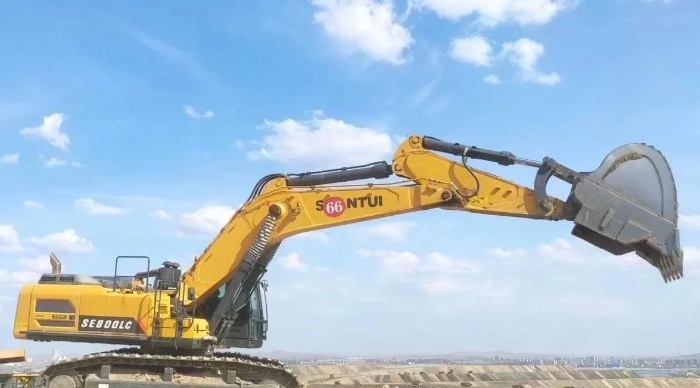 除了日常作业对于设备带来的挑战之外,矿区恶劣的施工环境也对设备的整体性能提出了更大的考验。得益于山推SE800的高性能配置,采用潍柴定制WP17T大排量发动机和德国林德液压系统组成的“黄金内核”,保证了挖掘机的作业效率,可以轻松应对矿区工况。