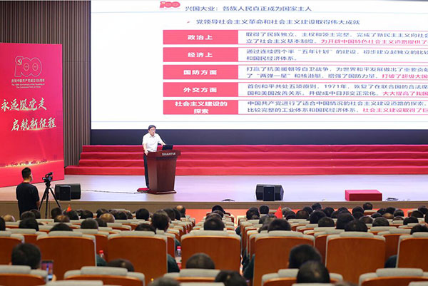 根据集团党委党史学习教育的要求,6月26日下午,公司党委书记张民在新研发中心会议厅作了题为《在百年党史中汲取奋进力量》的专题党课。公司党委副书记魏相圣,党委委员吴建义、安鲁琳、刘春朝,公司总监、直属单位党政负责人以及各单位党员代表640余人参加。专题党课由魏相圣主持。