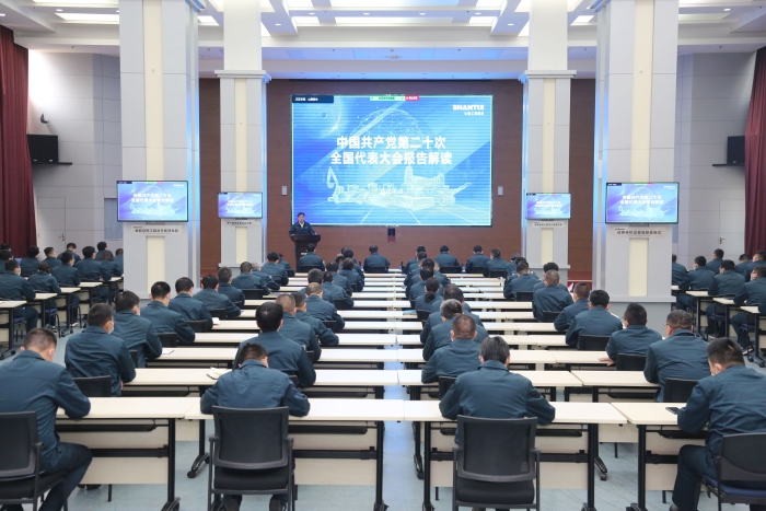 10月22日上午,公司党委在109会议室举办专题党课,公司党委书记张民就中国共产党第二十次全国人民代表大会报告进行全面解读。公司党委委员、党委职能部门负责人、各直属单位党政负责人、部助级以上党员领导干部现场参加,同时在山推建友公司、山推德州公司设立2个分会场,共计130人参加学习。公司党委副书记魏相圣主持。