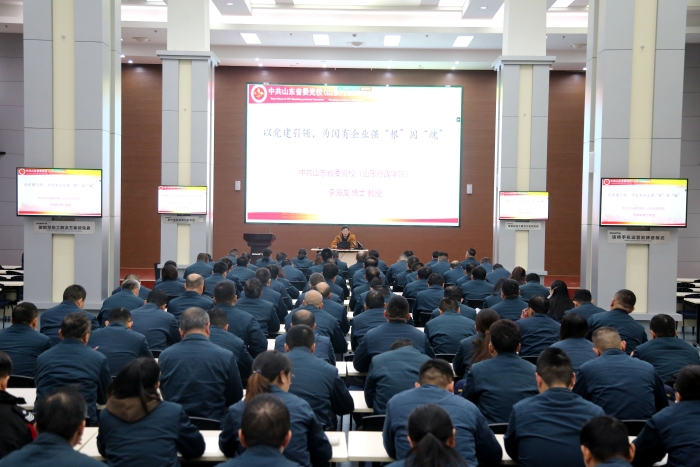 本次培训邀请了中共山东省委党校硕士生导师、省委组织部名师送教师资库专家李海龙教授授课。李教授从国有企业和国有企业党的建设战略价值、全面从严治党的深刻内涵和具体要求、全面从严治党的实现路径等方面,进行了阐述。详细讲解了为什么要全面从严治党,怎样做到全面从严治党的问题,通过深入浅出的理论讲解和案例分析,阐述了国有企业的地位和作用及新时期如何进一步做好国企党建工作等内容,明确要加强和完善党对国有企业的领导,加强和改进国有企业党的建设,使国有企业成为党和国家最可信赖的依靠力量。