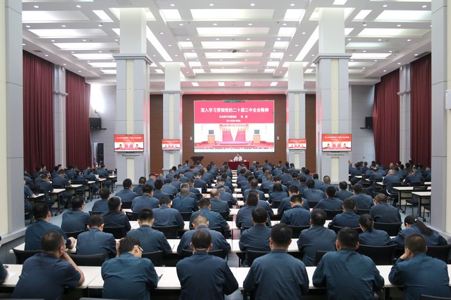 为深入学习贯彻党的二十届三中全会精神,9月24日上午,公司党委举办党的二十届三中全会精神专题培训。公司科级及以上领导干部参会,主会场设在总部大楼109会议室,山推建友、山推德州设立分会场,共计300余人参加培训。