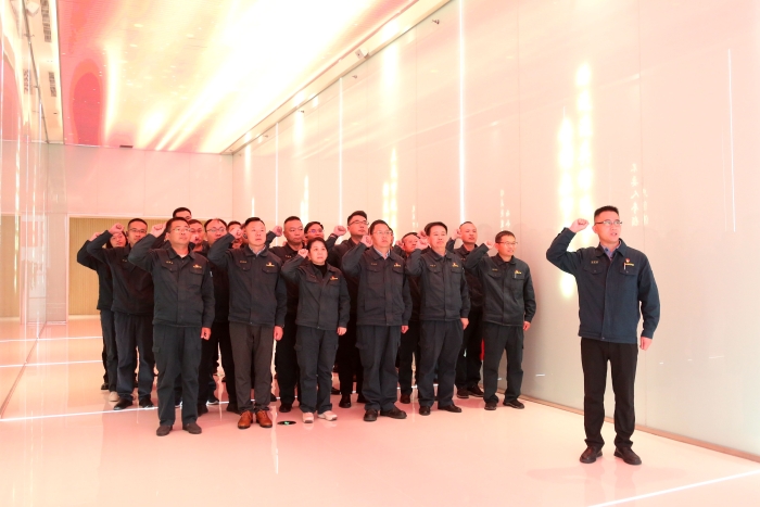 在廉政教育馆,公司纪委书记宋茂兵带领党员干部面对党旗,重温入党誓词,以铮铮誓言坚定理想信念,表达了对党的绝对忠诚。