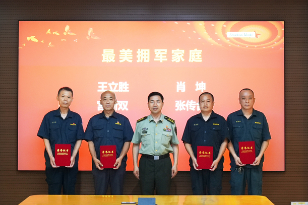 会上对公司各岗位、各战线上表现突出的14名退役军人授予“公司优秀退役军人”称号,并对全力支持子女参军入伍,为国防建设作出突出贡献的4名职工授予“公司最美拥军家庭”称号。