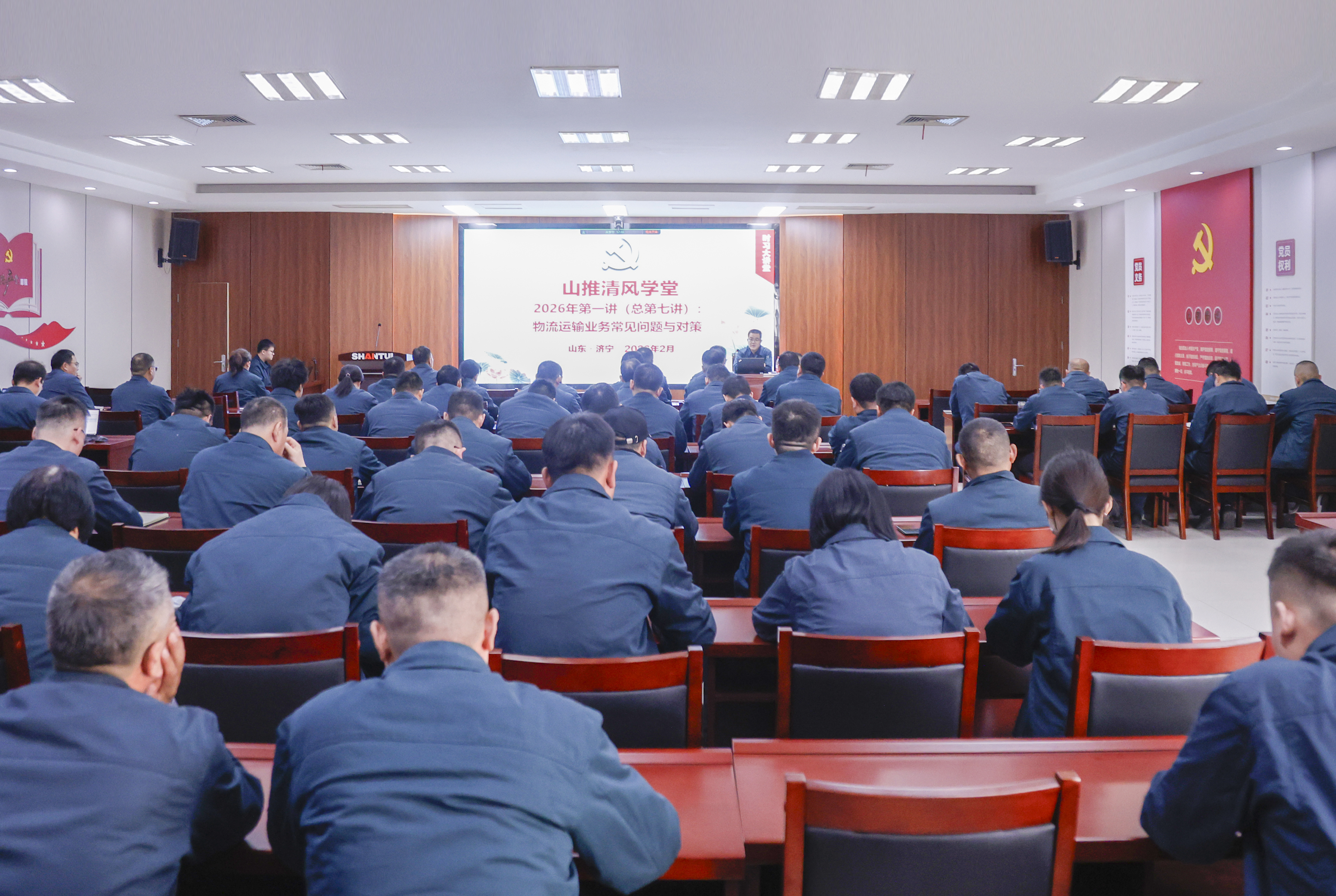 2月6日下午,“山推清风学堂”2026年第一讲--物流运输业务廉洁风险与防控在山推党校培训室开讲。本次培训采取线下+线上结合的方式,公司涉及物流招标、物流运输业务职能部门,营销、研发、生产系统及权属公司相关负责人及岗位人员,专兼职纪检干部共计100余人参加。