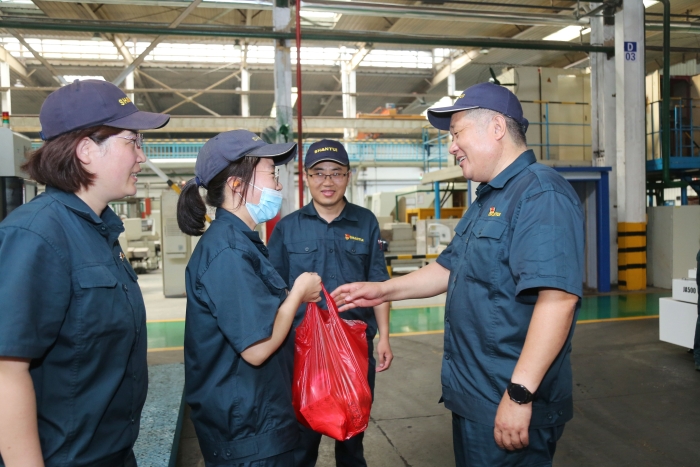 “送清凉”现场,郑建康同各单位相关负责人沟通交流,询问生产及防暑降温情况,强调各单位要深切了解一线职工需求,及时采取多种措施落实防暑降温和劳动保护工作,切实保障暑期广大职工的身体健康,促进公司的安全生产。领导的关怀和慰问,进一步激发了职工们的工作热情,大家纷纷表示一定发扬战高温、斗酷暑的奋斗精神,立足本岗,为山推的高质量发展贡献自己的一份力量。